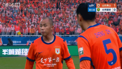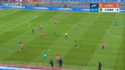 第49分钟,克雷桑直塞,谢文能爆射破门!山东1-0领先国安