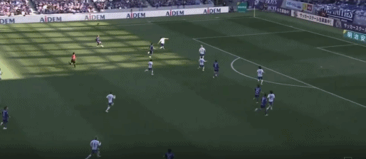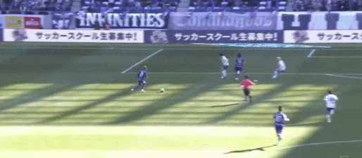 第41分钟,新井直人重炮攻门,东口顺昭将球扑进球门,广岛三箭1-0
