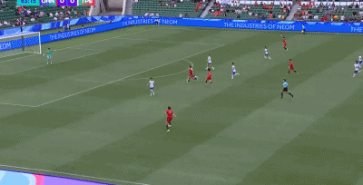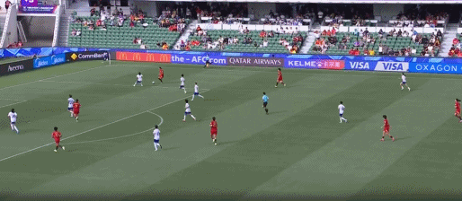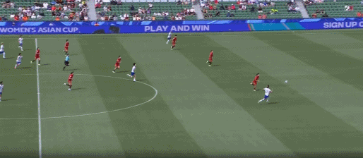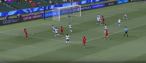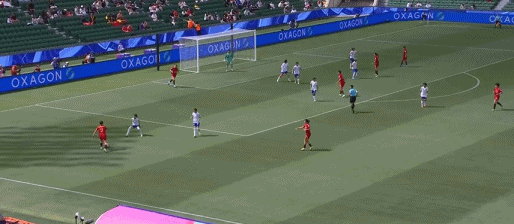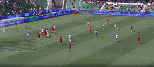 第54分钟,陈妗文看到彭诗梦站位靠前,随后吊射打高
