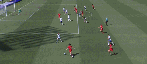第33分钟,张馨尝试传球到禁区内,无人顶到皮球