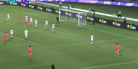 第85分钟,李恩影补射破门再进一球,韩国5-0乌兹别克斯坦
