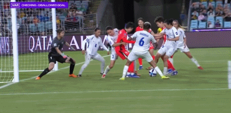 第9分钟,崔有利助攻,孙化然劲射破门,韩国1-0乌兹别克斯坦