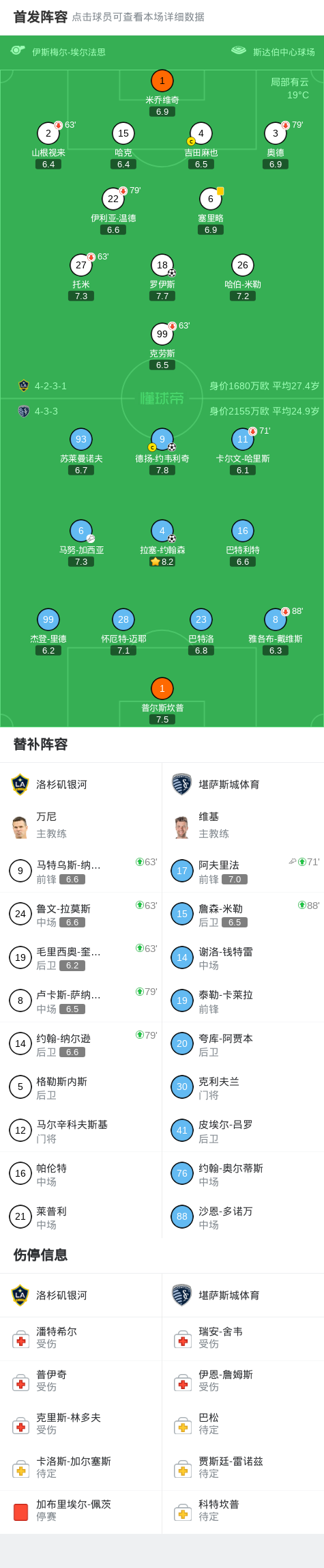 上半场补时第2分钟,堪萨斯城体育球员马努-加西亚助攻德扬-约韦利奇打入一球。