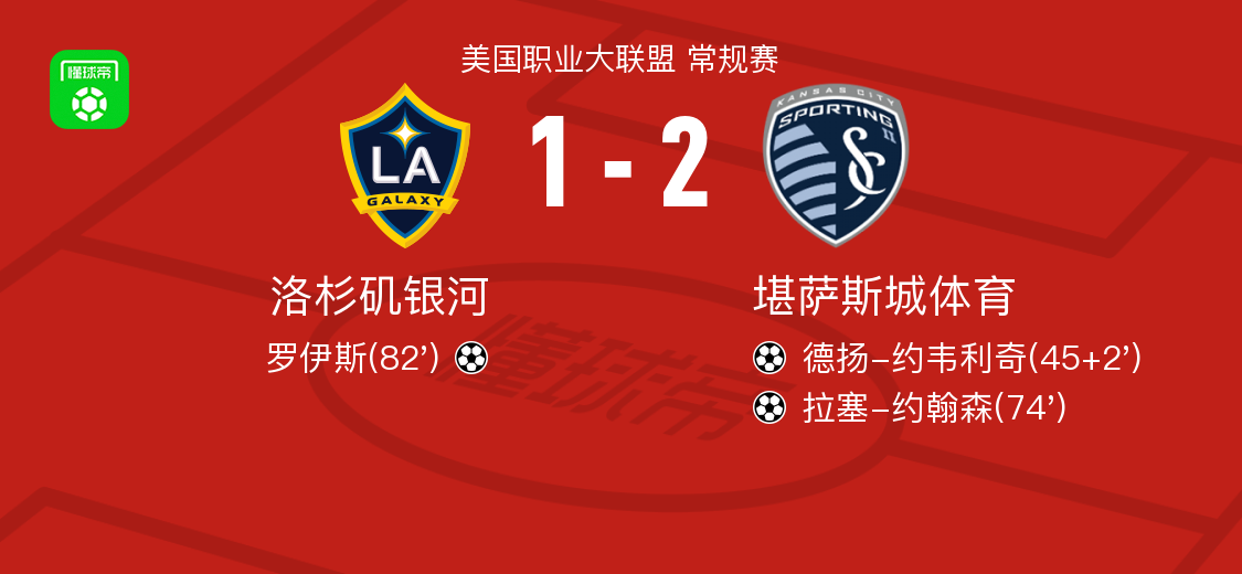 北京时间3月15日美国职业大联盟 常规赛,洛杉矶银河主场对阵堪萨斯城体育。洛杉矶银河罗伊斯破门。堪萨斯城体育德扬-约韦利奇破门,拉塞-约翰森破门。最终比分洛杉矶银河 1–2 堪萨斯城体育。
