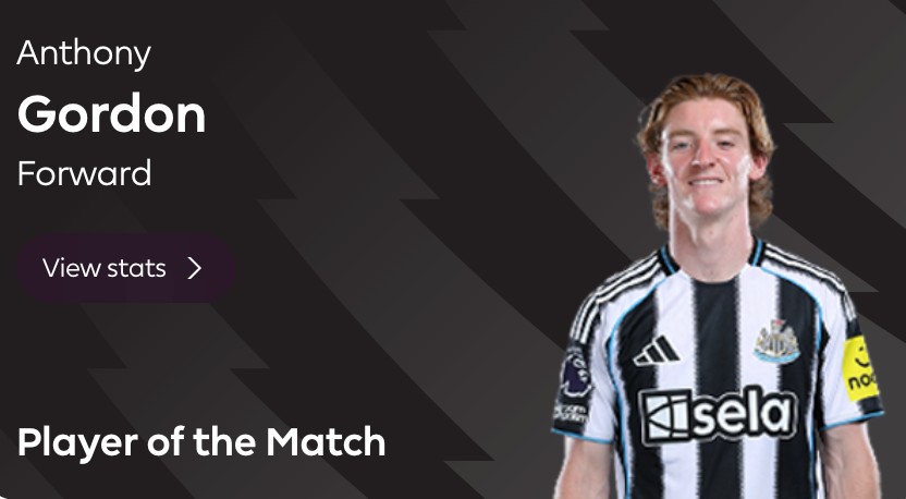 北京时间3月15日,在英超第30轮的比赛中,安东尼-戈登开场18分钟打进的全场唯一进球帮助纽卡斯尔联在客场1-0击败了切尔西,时隔14年再次在联赛中从斯坦福桥球场带走胜利,赛后安东尼-戈登当选英超官方本场比赛的最佳球员。