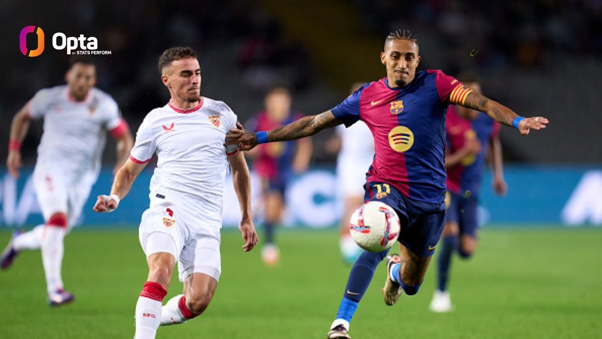 巴塞罗那在西甲主场对阵塞维利亚的最近22场比赛中保持不败(19胜3平)。这是他们在该项赛事主场对阵塞维利亚的第二长不败纪录,仅次于1940年至1986年期间的43场不败(35胜8平)。