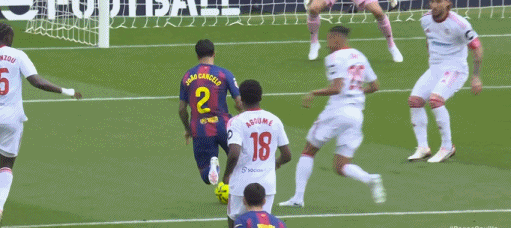 第60分钟,回归后首球,坎塞洛长驱直入扣过防守后破门,巴萨5-1塞维利亚