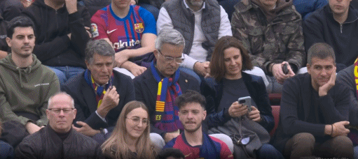 第36分钟,镜头给到巴萨主席候选人丰特、拉波尔塔