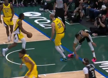 字母哥是在一次突破扣篮以后的落地时受伤的,他当时迎着赫夫的防守完成隔扣,但是落地时有崴脚的情况出现,并且他的左膝过度伸展。随后字母哥回到更衣室,没有出战末节的比赛。