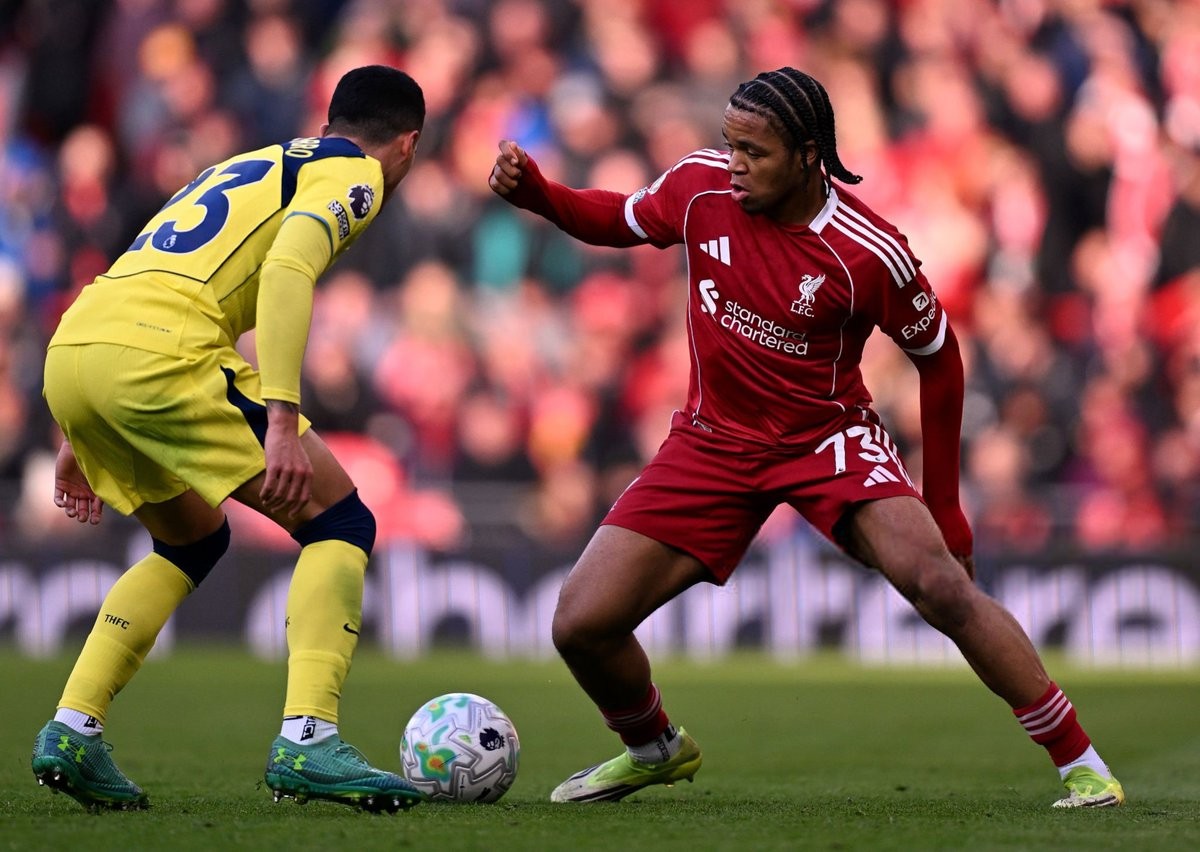 英超第30轮,利物浦主场对阵热刺,上半场战罢利物浦1-0领先,利物浦17岁边锋恩古莫哈上半场完成6次过人,本赛季英超只有6名球员全场成功过人次数比他更多。