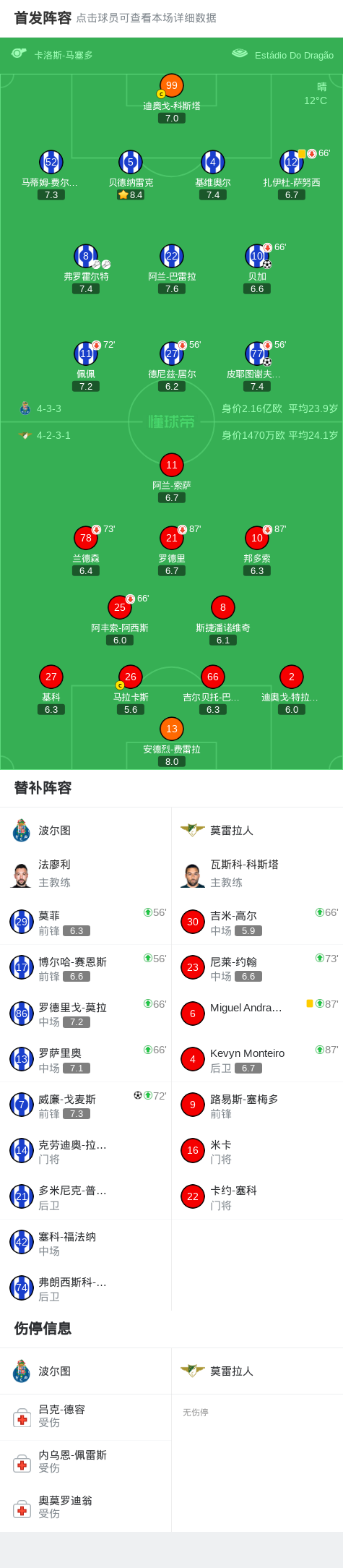 北京时间3月16日葡萄牙足球超级联赛 联赛 第26轮,波尔图主场对阵莫雷拉人。波尔图贝加破门,皮耶图谢夫斯基破门,威廉-戈麦斯破门。最终比分波尔图 3–0 莫雷拉人。