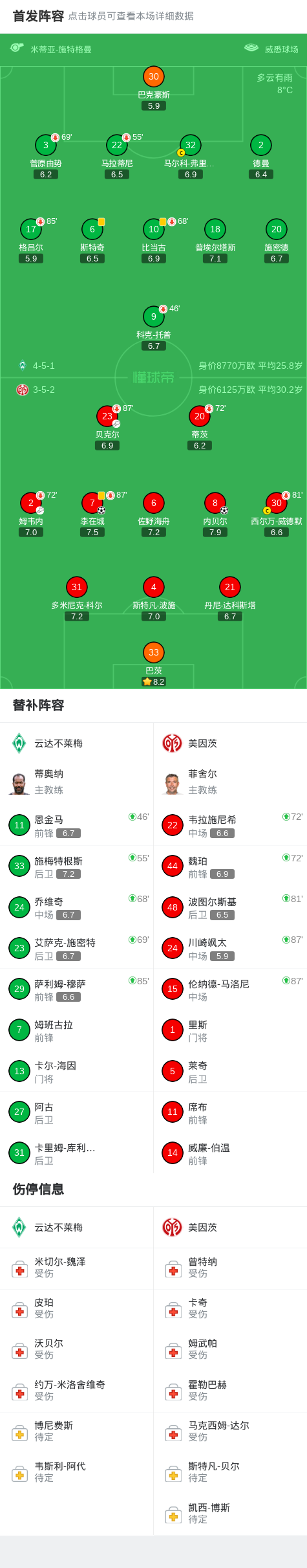 北京时间3月15日德国足球顶级联赛 联赛 第26轮,云达不莱梅主场对阵美因茨。美因茨内贝尔破门,李在城破门。最终比分云达不莱梅 0–2 美因茨。