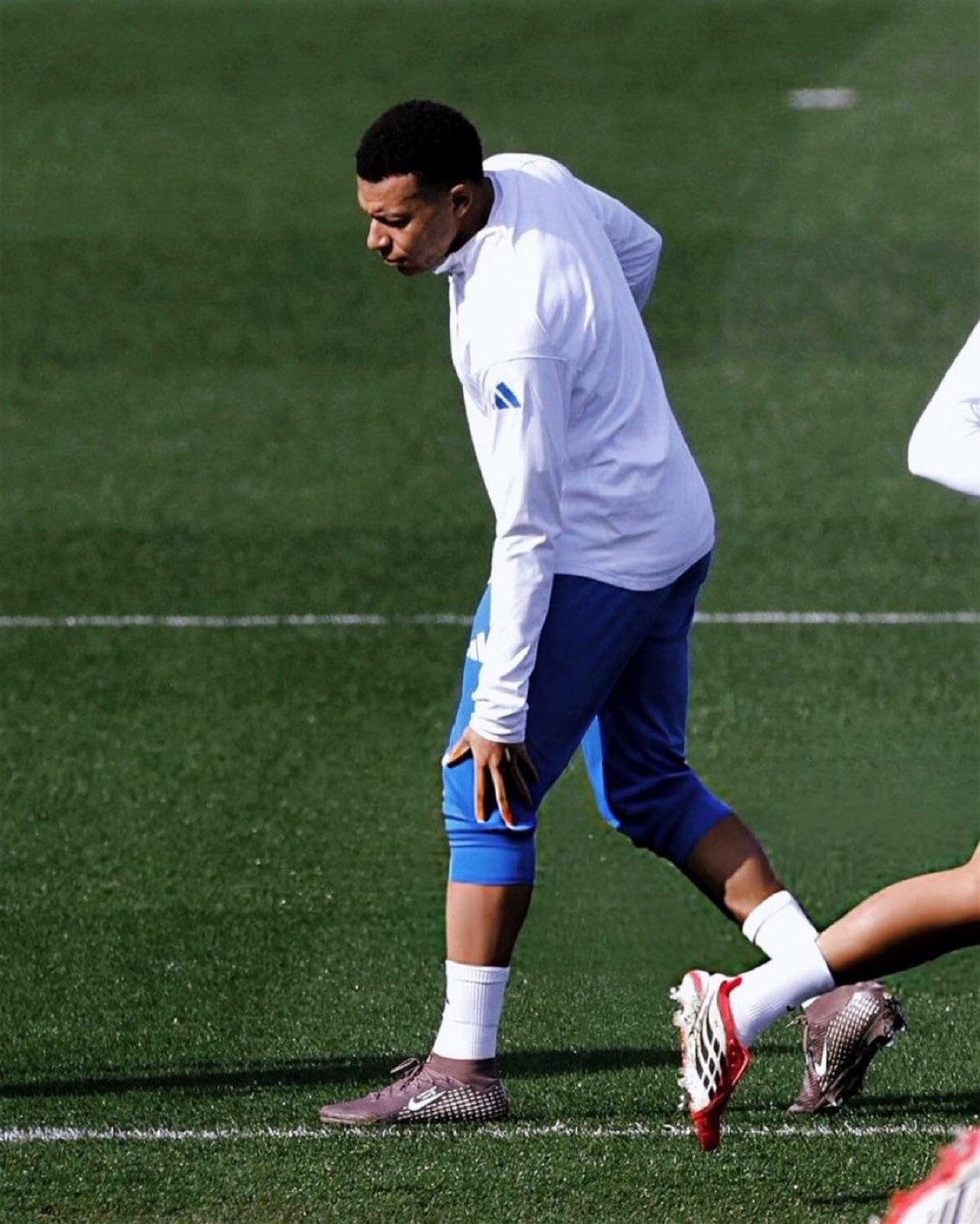 图 | 姆巴佩在训练中不时摸着自己的左腿膝盖