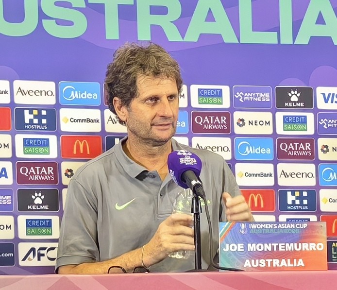 北京时间3月17日,女足亚洲杯半决赛,中国女足1-2不敌澳大利亚女足,无缘决赛。赛后,澳大利亚队主教练蒙特穆罗携比赛最佳球员凯特琳-福尔德出席新闻发布会。