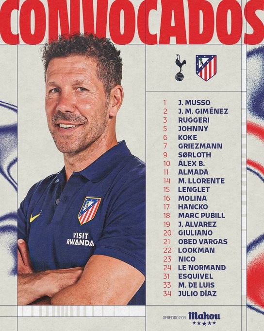 北京时间周四凌晨4点,马竞将迎来欧冠八分之一决赛客场对阵热刺的比赛,赛前,马竞官方公布了本场比赛的大名单,其中门多萨、巴勃罗-巴里奥斯缺席。