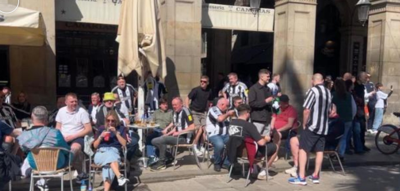 根据《世界体育报》的报道,约10000名纽卡斯尔球迷前往巴塞罗那观看欧冠对阵巴萨的比赛,仅2934人持有球票,他们在市中心聚集造势,当地为此提升安保级别并打击票贩。