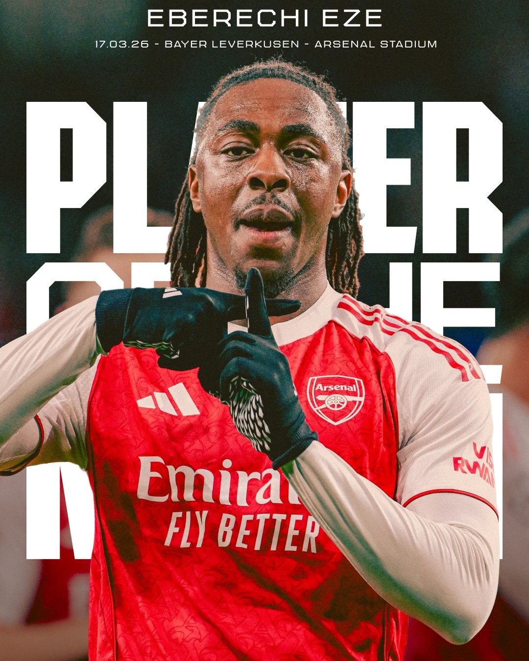 阿森纳2-0战胜勒沃库森,总比分3-1晋级欧冠八强,本场比赛打入一球的埃泽赛后当选了队内最佳球员。