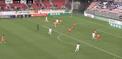 第4分钟,率先得分,山岸祐也后点推射得分,名古屋鲸鱼1-0领先