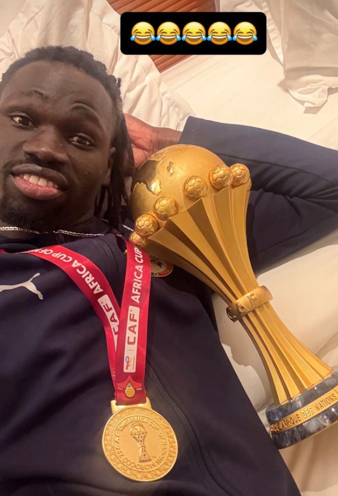 西斯在社交媒体晒出了自己佩戴2025年非洲杯冠军奖牌并与非洲杯冠军奖杯的合影,同时他还连发了5个哭笑不得的表情。