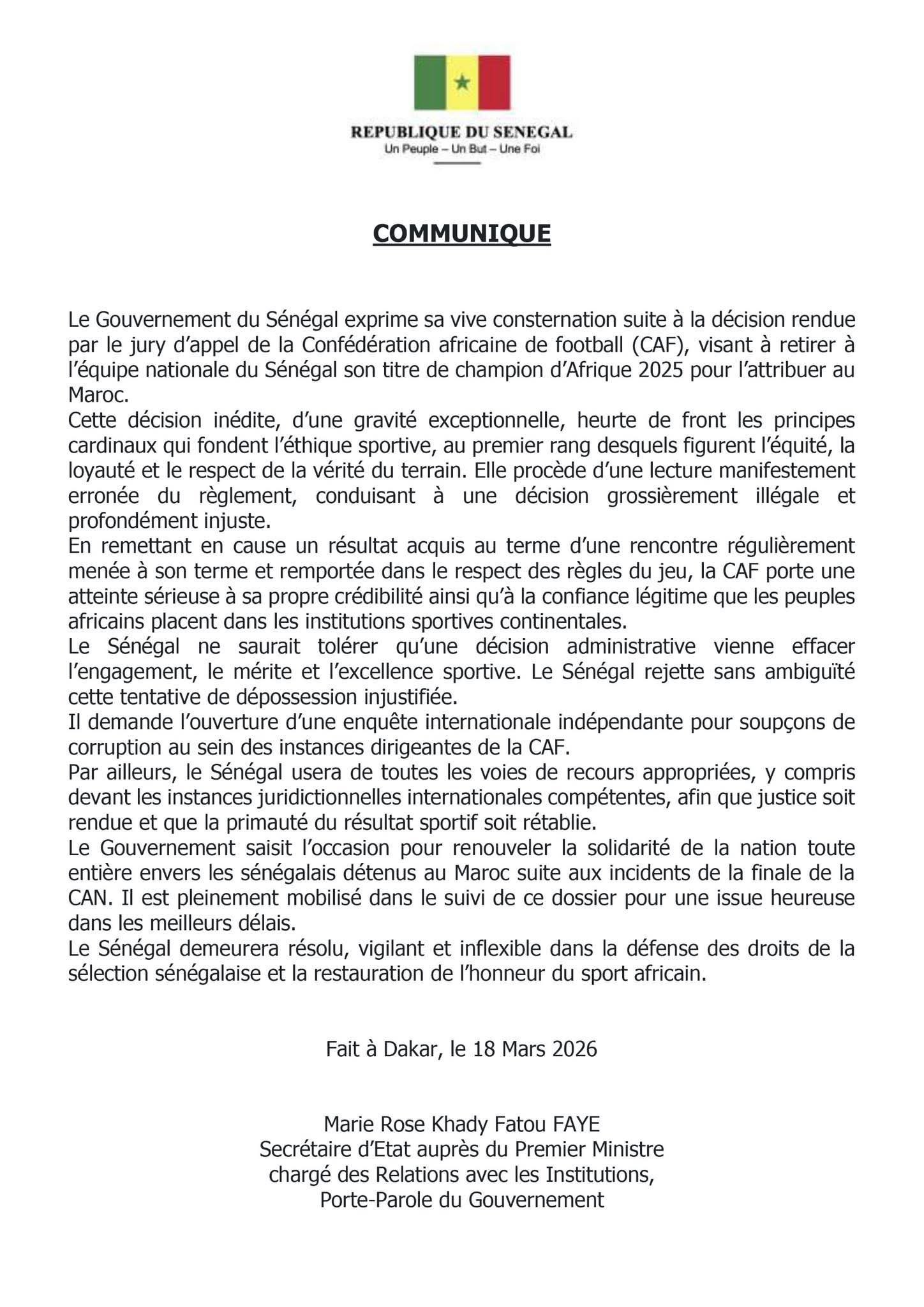 北京时间3月18日,非洲足联官方发布了一则声明,判定塞内加尔在非洲杯决赛中弃赛,改判摩洛哥夺冠。塞内加尔政府对此做出回应,要求针对非足联涉嫌腐败展开国际调查。 文章导航 索尔巴肯:厄德高因伤落选,若无意外他肯定会随队出战世界杯 体图:桑乔有意再次重返多特蒙德,并可能愿意为此降低薪水