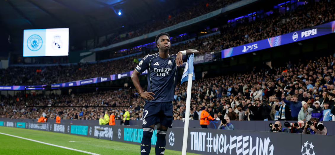 与曼城一役,堪称维尼修斯蜕变的完美缩影。