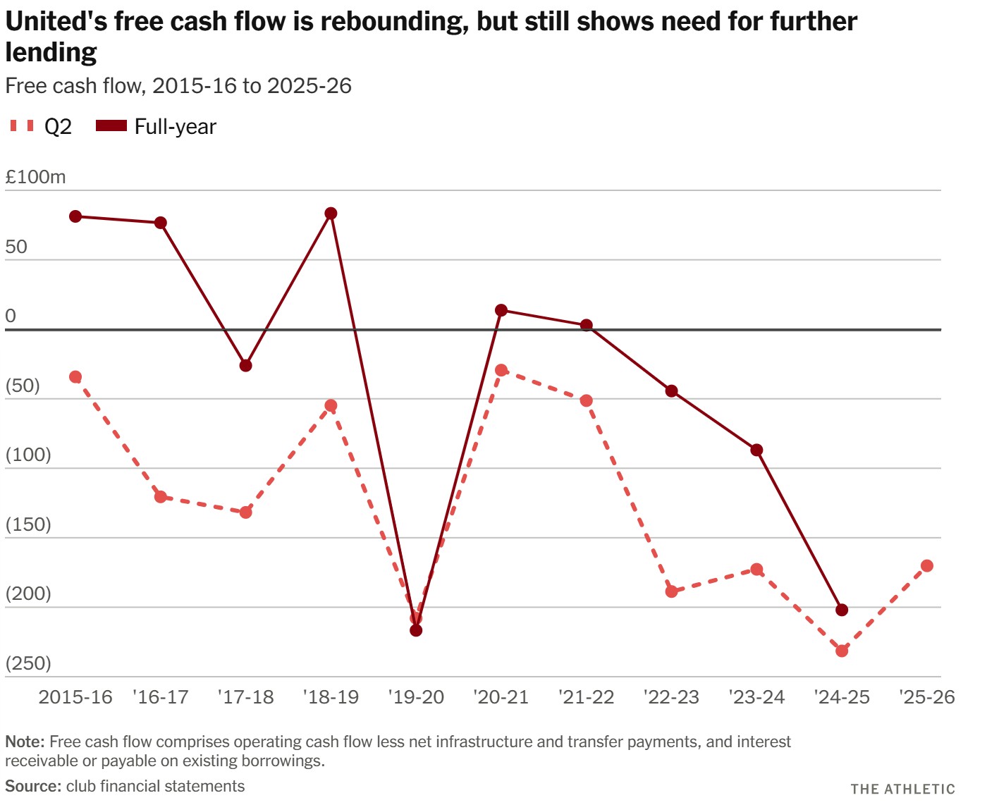 拉特克利夫一年前最引人注目的说法是,如果没有他上任后采取的措施,曼联“到圣诞节(2025年)时就会没钱了”。这是一个有争议的、耸人听闻的言论——尤其是因为曼联是上市公司,且未向股东预告即将发生的财务崩溃——但在夸夸其谈之下,确实有几分道理。曼联不能继续沿着老路走下去,至少在没有外部帮助的情况下不行。