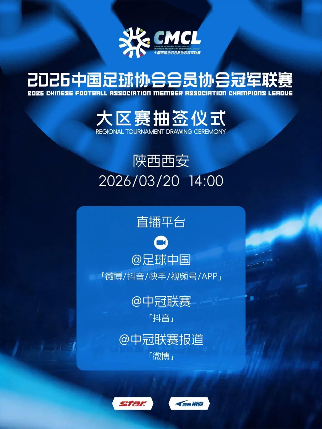 3月19日,中国足协中冠联赛官方宣布,2026赛季中冠联赛大区赛抽签仪式将于3月20日14点在西安举行。
