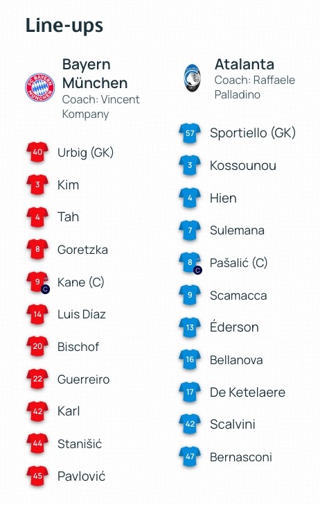 北京时间3月19日凌晨4点,欧冠1/8决赛次回合展开一场焦点战役,拜仁对阵亚特兰大。赛前,双方公布首发阵容。