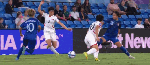 第49分钟,崔一善传中,洪成玉头球双响,朝鲜女足2-0中国台北女足