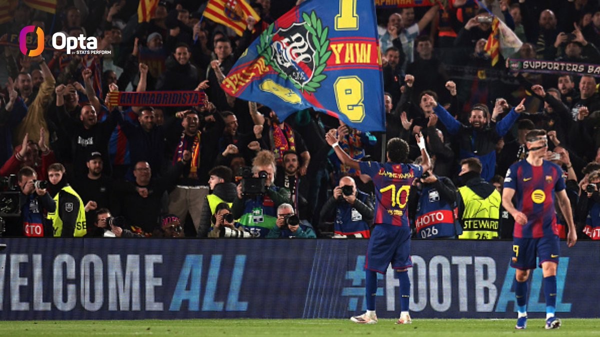 欧冠1/8决赛首回合,亚马尔在客场对阵纽卡斯尔联的比赛中打入一粒绝平点球。