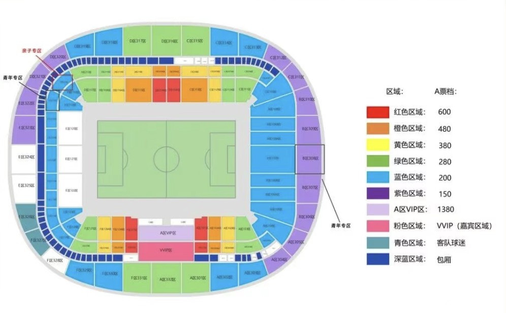 球票分为7档,价格分别为150元、200元、280元、300元、380元、480元、600元以及1380元。