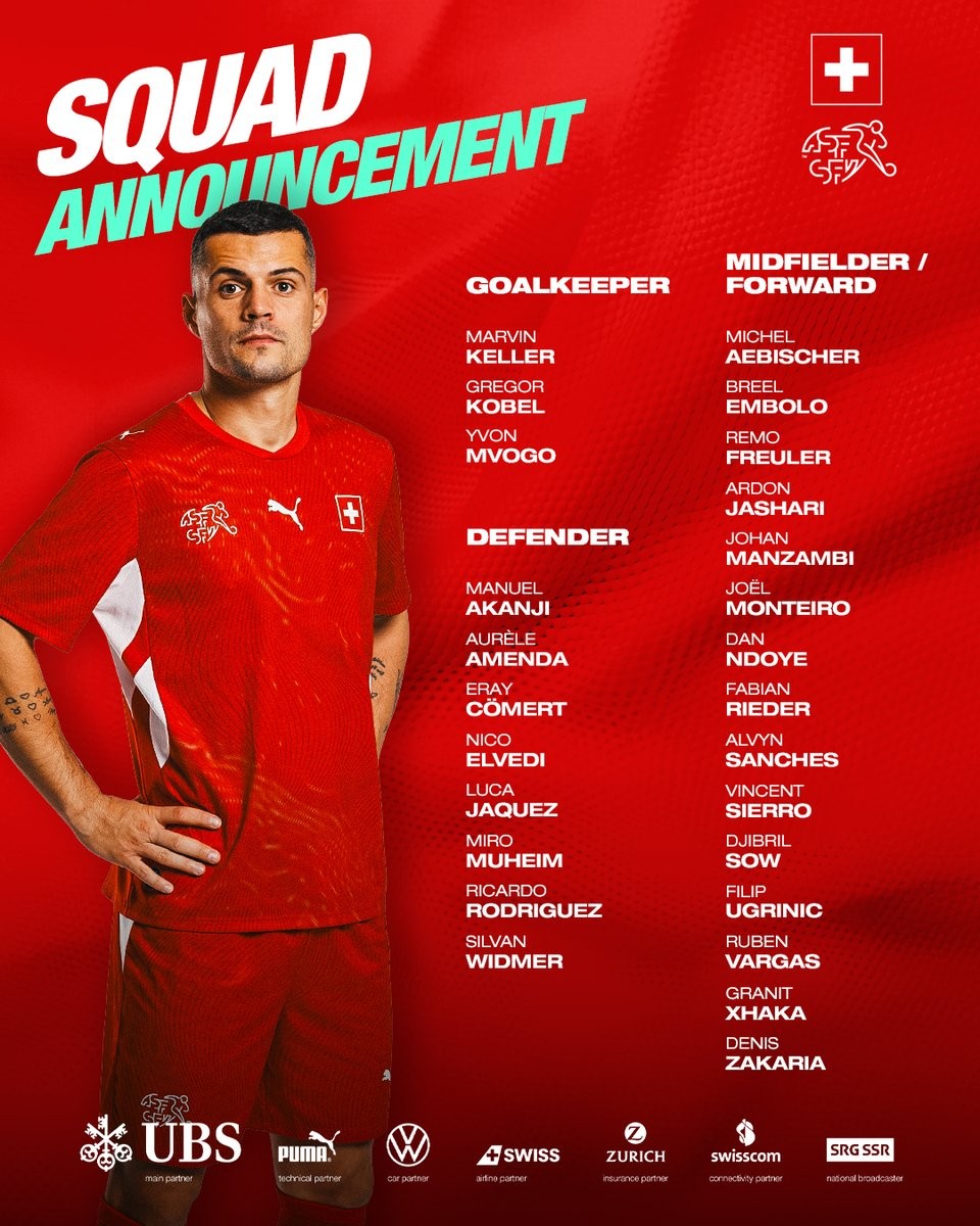 3月19日,瑞士队新一期大名单公布,扎卡、阿坎吉、亚沙里、恩多耶、恩博洛、里卡多-罗德里格斯等球员入选。在即将来到的国际比赛日,瑞士队将先后与德国、挪威进行友谊赛。