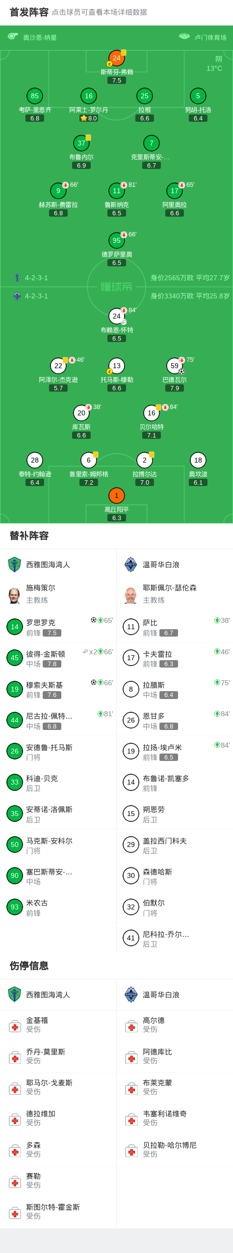 北京时间3月19日中北美冠军联赛 1/8决赛次回合,西雅图海湾人对阵温哥华白浪。西雅图海湾人穆索夫斯基破门,罗思罗克破门。温哥华白浪巴德瓦尔破门。最终比分西雅图海湾人 2–1 温哥华白浪。两回合总比分西雅图海湾人5-1温哥华白浪。