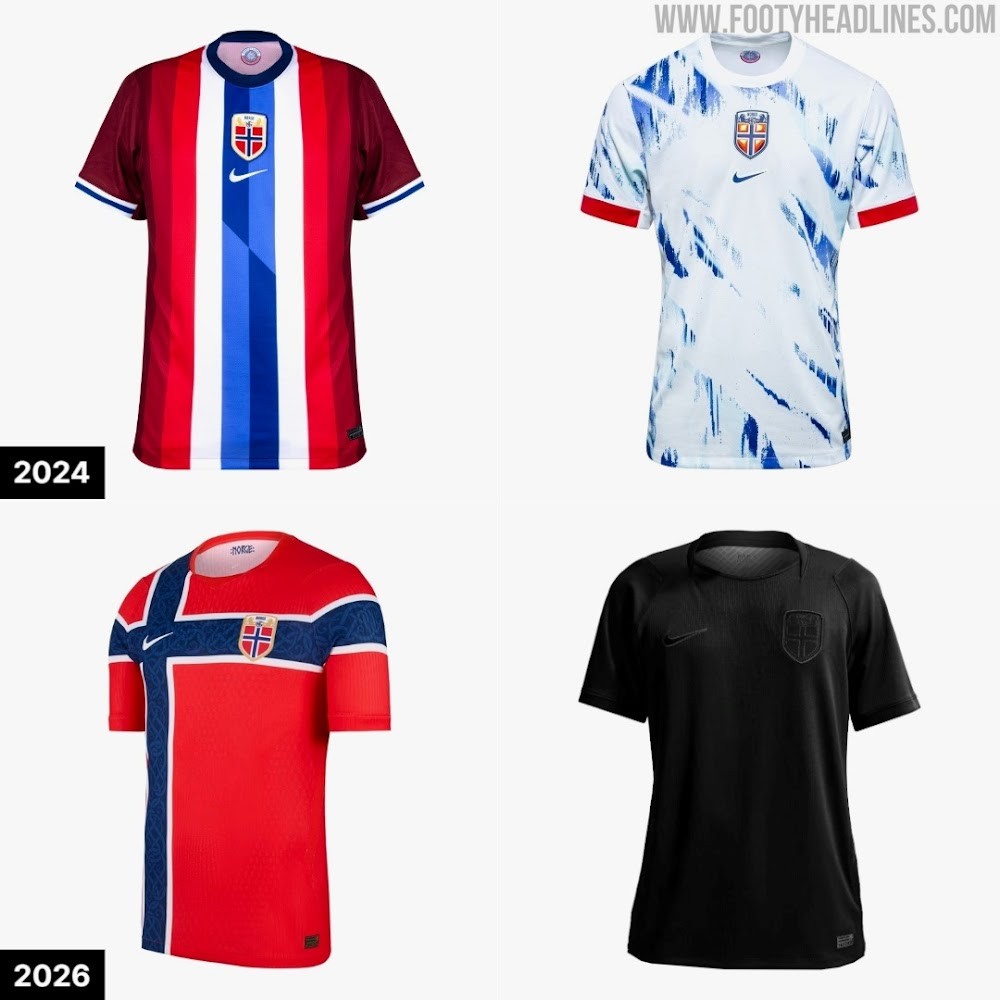 挪威 2024 年和 2026 年球衣对比