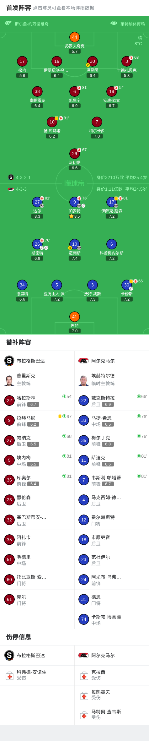 北京时间3月20日欧洲协会联赛 1/8决赛次回合,布拉格斯巴达对阵阿尔克马尔。阿尔克马尔伊萨克-延森破门,帕罗特破门,迈南斯破门,达尔破门。最终比分布拉格斯巴达 0–4 阿尔克马尔。两回合总比分布拉格斯巴达1-6阿尔克马尔。