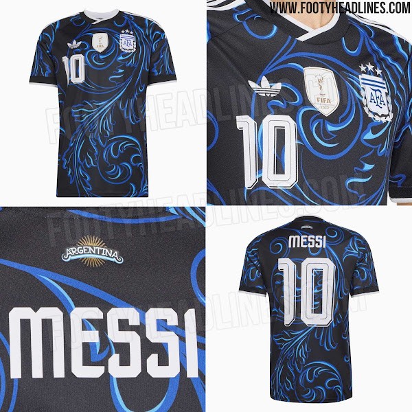 这款球衣以黑色为主色调,搭配白色队徽和天蓝色细节,是自2018年以来阿根廷首款黑色球衣。与阿迪达斯为其他国家队打造的客场球衣一样,本款球衣也沿用了经典三叶草标志。