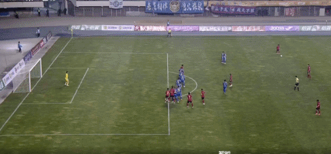 第32分钟,李强禁区内凌空抽射,皮球高出球门