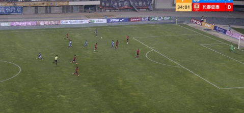 第35分钟,先拔头筹,张煜东禁区迎球低射破门,石家庄功夫1-0