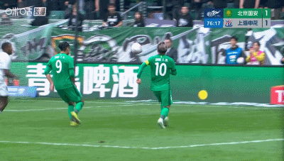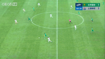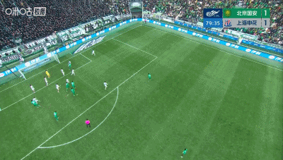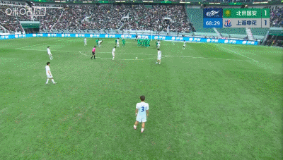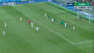 第68分钟,陈晋一任意球世界波直挂死角,申花1-1扳平国安!