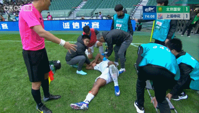 第12分钟,阿不都海米提受伤倒地,接受队医治疗