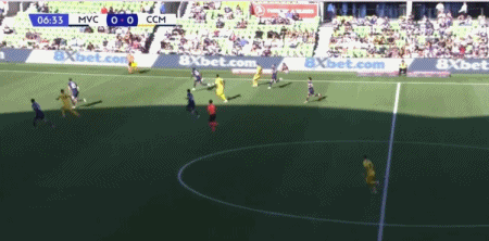 第50分钟,米兰达左路传中,韦卢皮莱头槌破门扳平比分,墨尔本胜利1-1