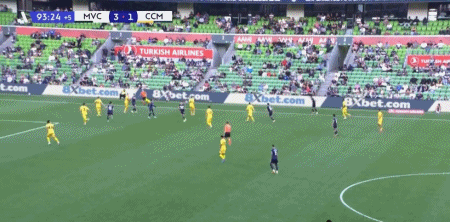 第90+4分钟,让罗横传,戴维森推射破门再下一城,墨尔本胜利4-1