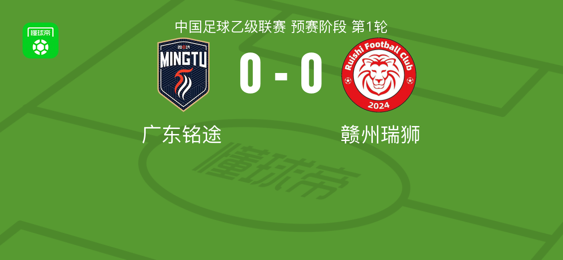 北京时间3月21日中国足球乙级联赛 预赛阶段 第1轮,广东铭途主场对阵赣州瑞狮。最终比分广东铭途 0–0 赣州瑞狮。