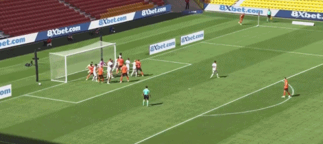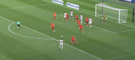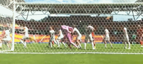 第27分钟,克莱因头球攻门,球被奥卢瓦耶米扑了一下后击中门框弹出