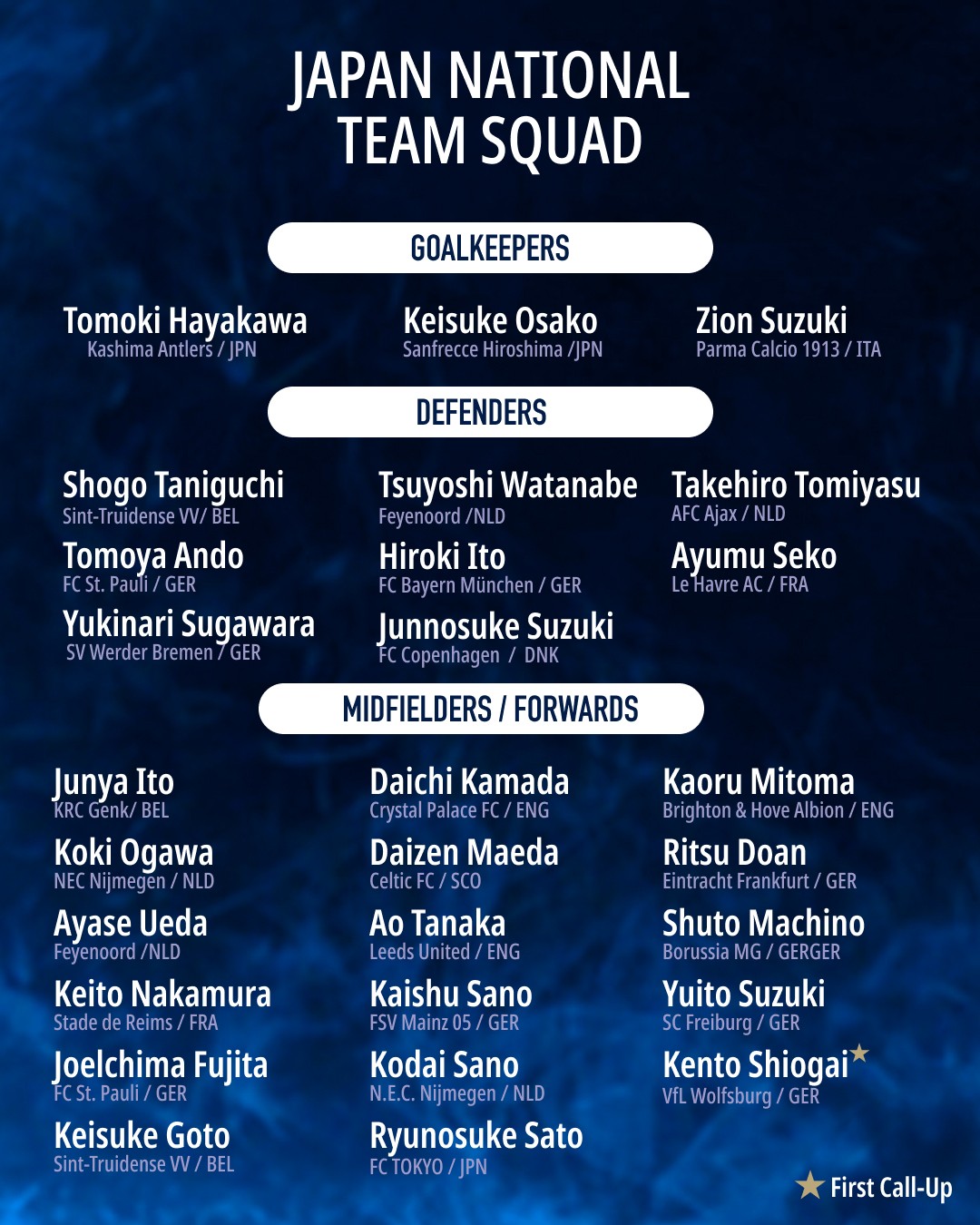日本足协此前公布了日本3月大名单,其中本次名单共有28名球员,其中只有3名球员来自J联赛,佐藤龙之介则是唯一的外场球员,另外两人是门将。