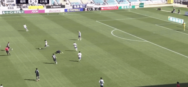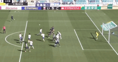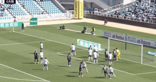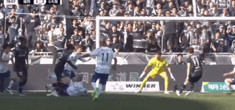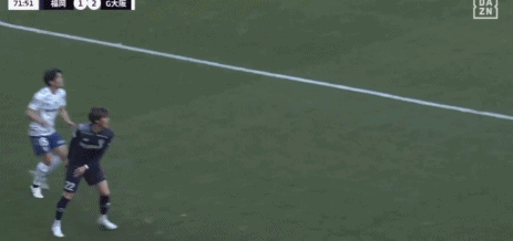 第22分钟,辻冈佑真乱战小角度打门,大阪钢巴门将东口顺昭将球挡入网窝,1-1!