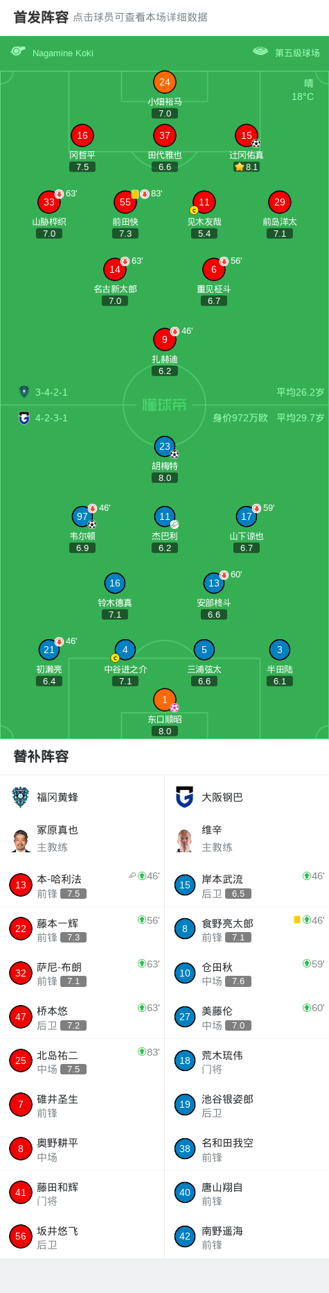 第72分钟,前田快争顶犯规,被出示黄牌