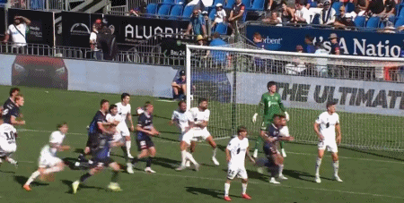 第11分钟,布拉坦传中,杜兰停球半转身抽射破门,麦克阿瑟1-0奥克兰