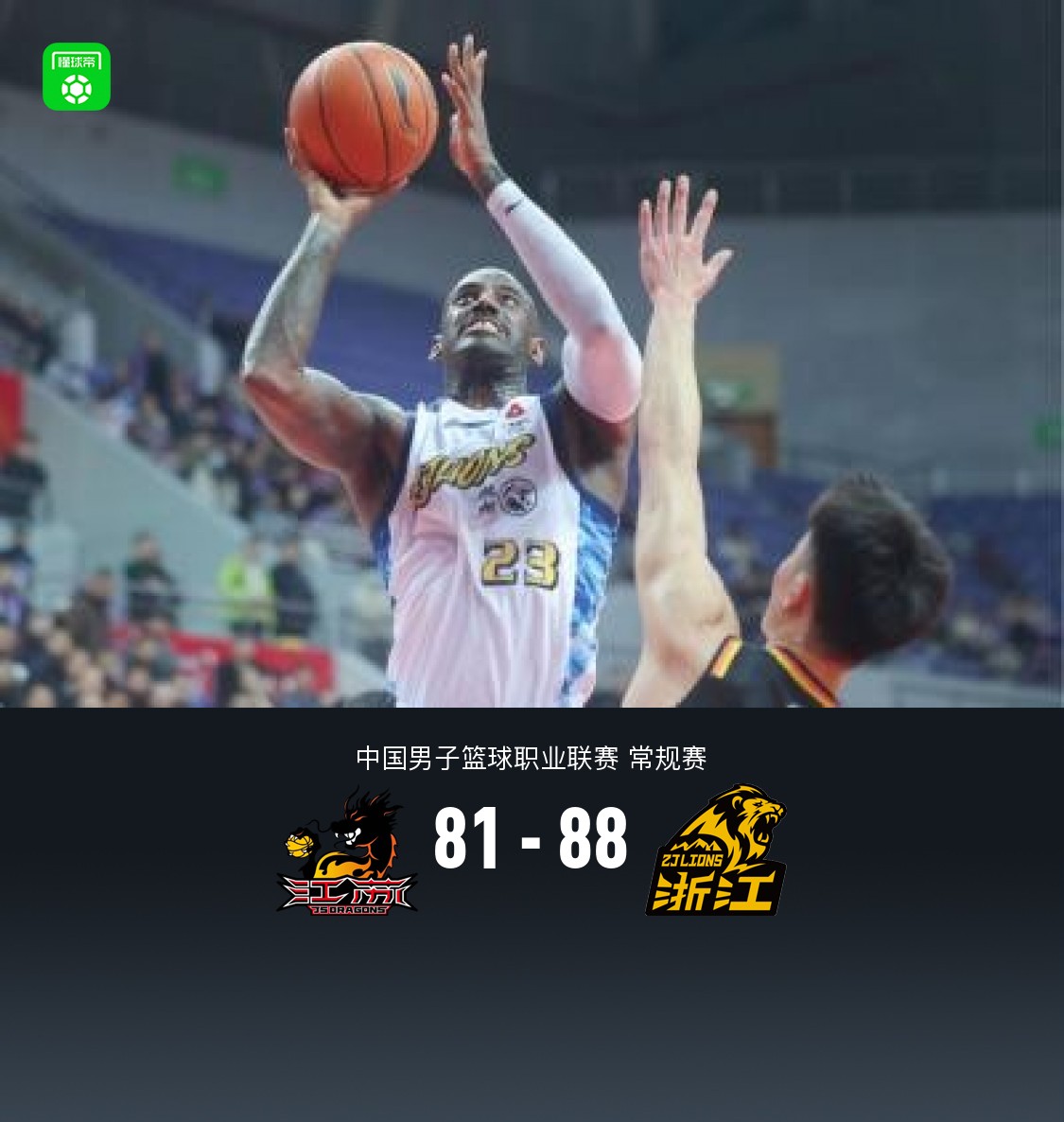 北京时间3月22日中国男子篮球职业联赛 常规赛,江苏肯帝亚对阵浙江方兴渡。半场江苏37-43广厦,最终江苏81-88广厦。