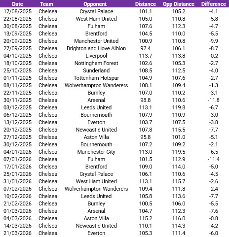 根据天空体育的统计,切尔西在本赛季每一场英超比赛中跑动距离都不及对手,同时也是全英超场均跑动数据最低的球队。